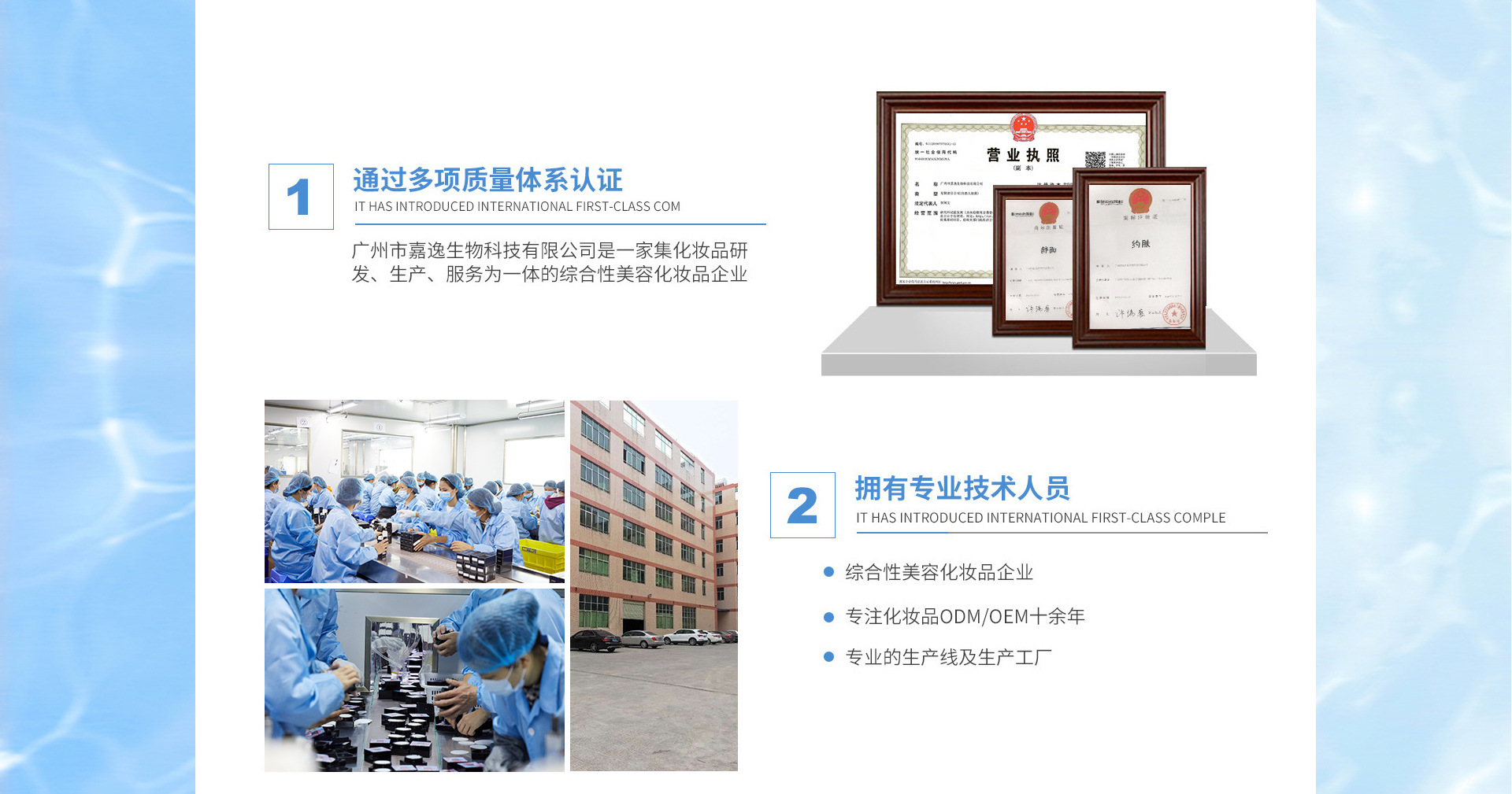 約膚(廣州)生物技術(shù)有限公司主營彩妝、美容護(hù)膚、化妝工具等。公司秉承“顧客至上,銳意進(jìn)取”的經(jīng)營理念,堅(jiān)持“客戶第一”的原則為廣大客戶提供優(yōu)質(zhì)的服務(wù)。歡迎惠顧! 約膚生物是一家集化妝品原料、配方研發(fā)、加工生產(chǎn)于一體的化妝品OEM加工,化妝品ODM加工的源頭工廠,加工環(huán)境、設(shè)備儀器、檢測手段、人員素質(zhì)都符合高品質(zhì)化妝品的要求,我們待客真誠,和客戶互相支持共同前進(jìn),高起點(diǎn)的產(chǎn)品為客戶成功切入市場、開拓市場,鞏固市場、提供了有力保障。 公司旗下品牌有“約膚”、 “韓芭莎”、“ 悅榕世家”、“ 舒面“、” 極控“、”金妙“ 等。 產(chǎn)品檢測保障: 約膚生物企業(yè)提供“國產(chǎn)非特殊化妝品備案服務(wù)”與化妝品所有常規(guī)檢驗(yàn)項(xiàng)目的檢測服務(wù),我們還設(shè)立了化妝品檢測實(shí)驗(yàn)室,用最先進(jìn)的檢驗(yàn)設(shè)備、試劑和國際標(biāo)準(zhǔn)的檢測方法為產(chǎn)品作出高水平標(biāo)準(zhǔn)的指引和質(zhì)量督促。全方位保證企業(yè)的產(chǎn)品在消費(fèi)者手中保證消費(fèi)者安心,放心使用。