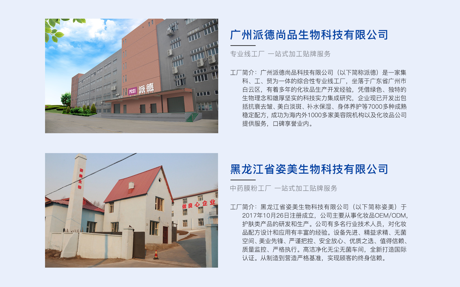 源美集團(tuán)擁有多家生產(chǎn)工廠,工廠占地面積共2萬平方米,擁有多條現(xiàn)代化的生產(chǎn)線,采用多臺(tái)國(guó)際先進(jìn)全自動(dòng)乳化設(shè)備,具備各類膜粉,膏霜、洗護(hù),中藥養(yǎng)生及美容化妝產(chǎn)品的生產(chǎn)條件和能力,年生產(chǎn)量可達(dá)到數(shù)千萬支。