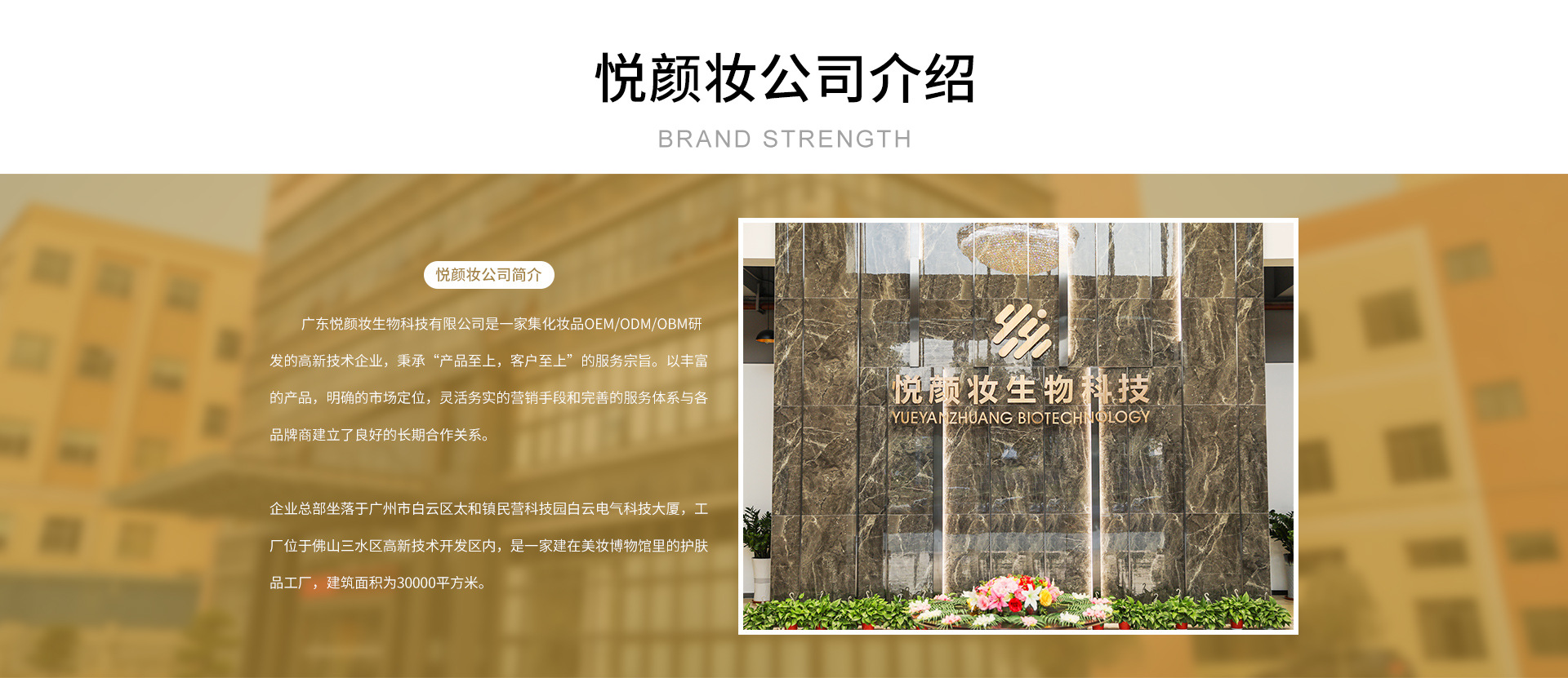 廣東悅顏妝生物科技有限公司旗下設(shè)有廣州逸朗生物科技有限公司和廣州不凡新材料科技有限公司。我們始終以顧客為導(dǎo)向,以科研為重點(diǎn),以開發(fā)為手段,以應(yīng)用為目的,以質(zhì)量為基礎(chǔ),招納國際精英,運(yùn)用前沿科技,以“智能化生產(chǎn),帶動企業(yè)發(fā)展”,創(chuàng)新創(chuàng)造化妝品新技術(shù)、新專利,服務(wù)顧客,努力向世界一流、國際知名的化妝品企業(yè)發(fā)展,致力打造中國民族的化妝品品牌企業(yè)。
