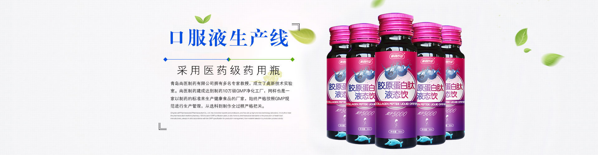 青島尚醫(yī)制藥有限公司,坐落于青島美麗的養(yǎng)生圣地----嶗山腳下, 是山東青島市一家有GMP認證、ISO9001質量管理認證和ISO22000食品安全認證的研發(fā)、生產型企業(yè),是專業(yè)的醫(yī)用食品、保健食品、營養(yǎng)食品生產商,擁有國家級標準十萬級GMP凈化車間,SC/GMP雙證齊全,可生產各種規(guī)格片劑、粉劑、膠囊、顆粒、固體飲料、口服液、代用茶等劑型企業(yè)。其中膠囊生產年產量1億粒,壓片5000萬片。 尚醫(yī)制藥與中國醫(yī)科大學、中國海洋大學、中科院國家海洋研究所、青島農業(yè)大學專家團隊共同攜手全力打造健康養(yǎng)生新理念。