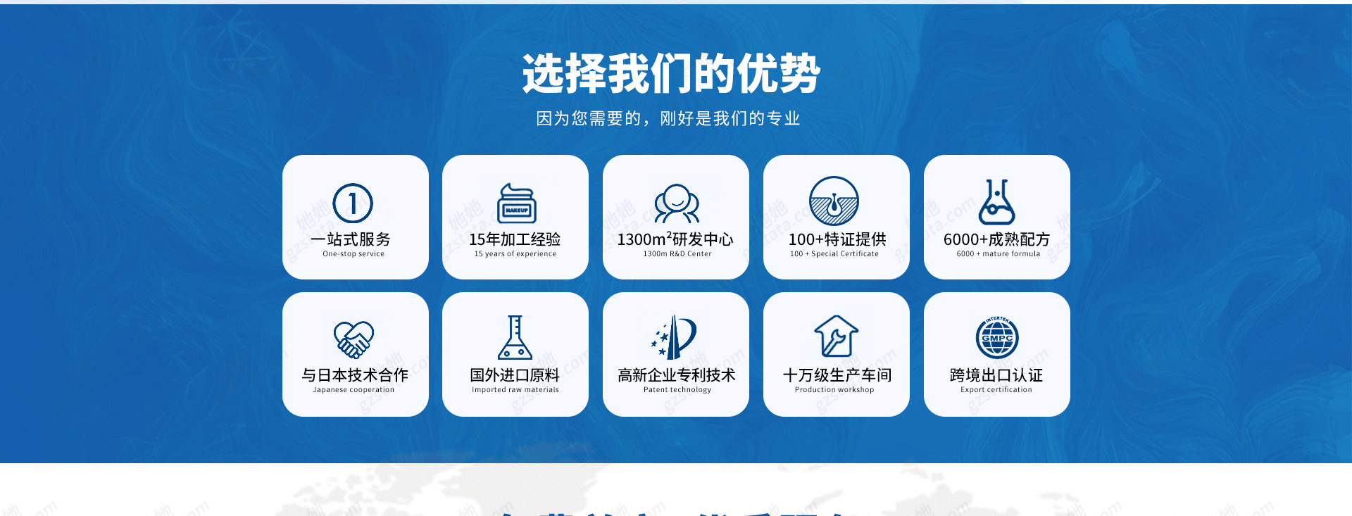 廣州她她生物科技有限公司是一家集德國、日本、意大利等國先進(jìn)技術(shù)于一體,年生產(chǎn)能力達(dá)數(shù)千噸的大型化妝品生產(chǎn)基地,工廠占地面積8000平方米,全套生產(chǎn)線嚴(yán)格按GMP標(biāo)準(zhǔn)設(shè)計投產(chǎn),達(dá)到微菌化標(biāo)準(zhǔn):全面引進(jìn)享譽全球的德國IKA公司乳化均質(zhì)機、英國克藍(lán)公司密封裝置、德國ABB高速電機和英國原裝噴碼機等當(dāng)今國際一流的生產(chǎn)設(shè)備、全自動物流配送中心、計算器組成的物控管理網(wǎng)絡(luò)實現(xiàn)倉儲、生產(chǎn)、配送全方位智控系統(tǒng)。 采用國際最新生產(chǎn)工藝、先進(jìn)的生產(chǎn)檢測設(shè)備和無菌生產(chǎn)車間、完善的質(zhì)保體系、精挑細(xì)選的產(chǎn)品原料、確保了產(chǎn)品的高質(zhì)量和安全性。公司設(shè)有高規(guī)格的研發(fā)中心和PMC中心,中、高級專業(yè)技術(shù)人員占員工總數(shù)的30%。公司以專業(yè)的研發(fā)能力為基礎(chǔ),憑著先進(jìn)的國際化標(biāo)準(zhǔn)廠房和生產(chǎn)設(shè)備,致力于高品質(zhì)化妝品的研發(fā)和制造,為自有品牌以及加工客戶提供適應(yīng)市場需要的高品質(zhì)產(chǎn)品。