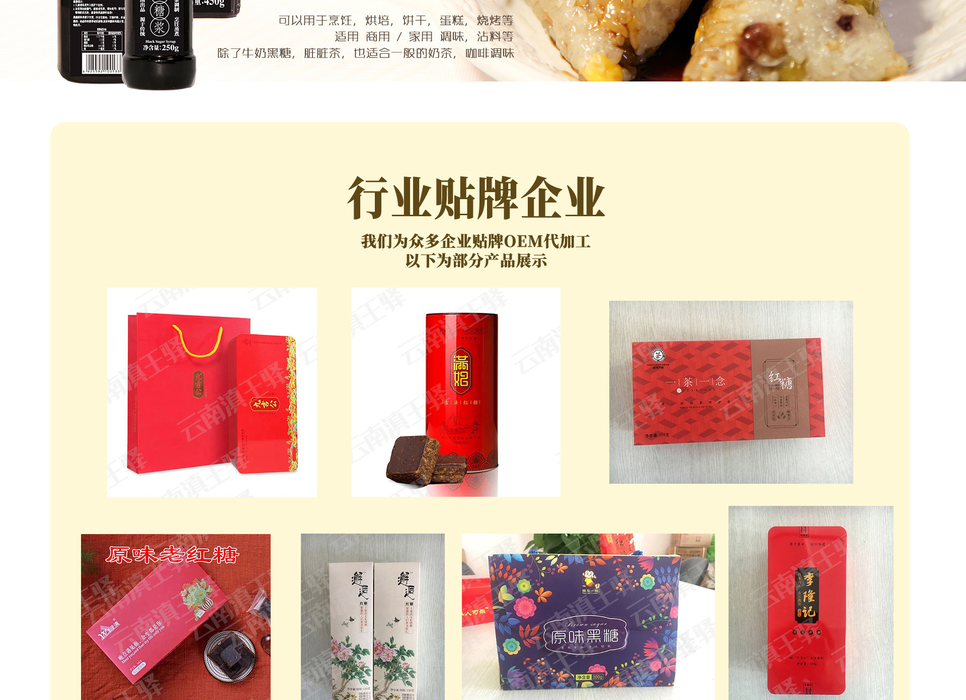 云南滇王驛農(nóng)業(yè)科技開發(fā)有限公司2000年成立。企業(yè)是“云南省農(nóng)業(yè)產(chǎn)業(yè)化重點龍頭企業(yè)”、“云南省農(nóng)產(chǎn)品深加工科技型企業(yè)” 、“楚雄州規(guī)模以上企業(yè)”及“云南省科技型中小企業(yè)”,“國家級高新技術(shù)企業(yè)”被列為“中國農(nóng)業(yè)部農(nóng)產(chǎn)品加工業(yè)景氣監(jiān)測固定觀察點”、企業(yè)商標“滇王驛”是“云南省著名商標,是楚雄州萬企幫萬村扶貧明星企業(yè)。多年耕耘,企業(yè)通過了HACCP、ISO9000、ISO22000食品質(zhì)量安全管理體系認證,已獲專利證書26項,報批審核的發(fā)明專利2項,生產(chǎn)資質(zhì)6項。 公司糖制品業(yè)務(wù)產(chǎn)值達到3千多噸,“滇王驛紅糖、黑糖”,“樹立了云南高原紅糖在國內(nèi)消費者心中的地位,奠定了全國消費者對“云南高原紅糖、黑糖”的價值感及認同感. 公司除生產(chǎn)自有品牌“滇王驛”外,還為國內(nèi)眾多企業(yè)做OEM貼牌代工。 歡迎代理批發(fā)、貼牌代工 OEM 。