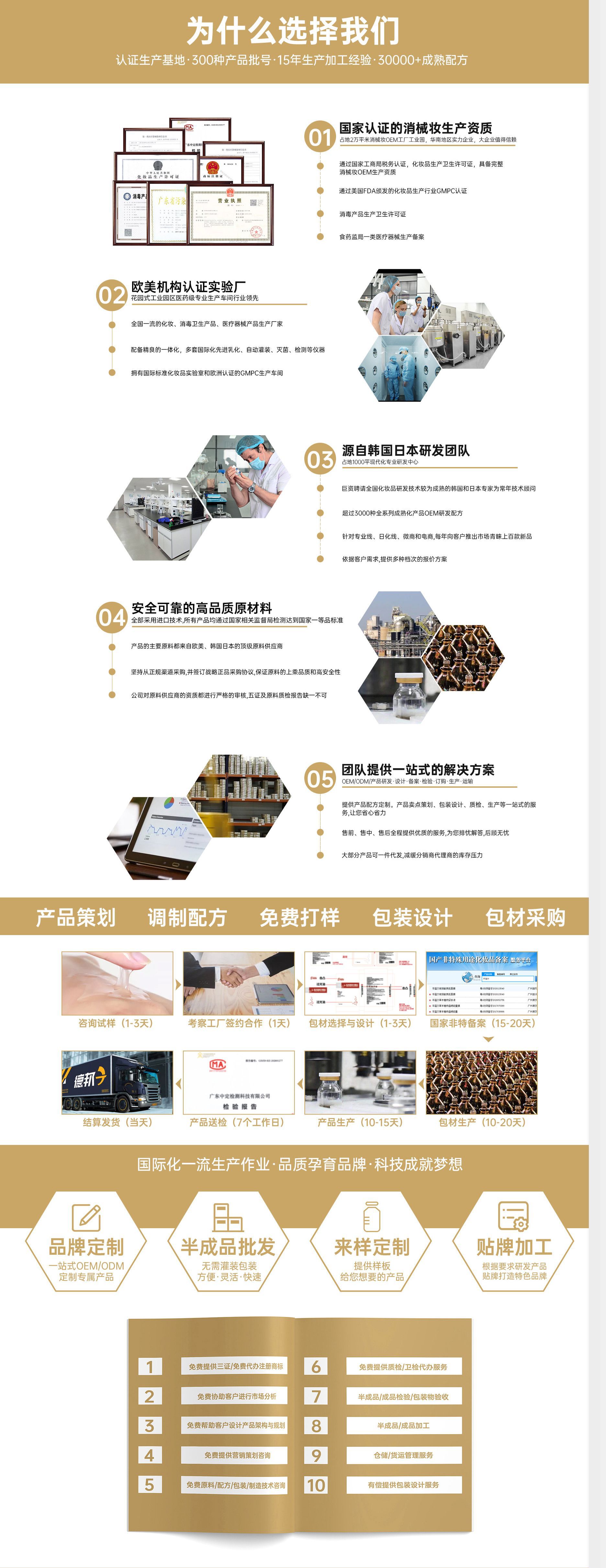 廣州澤美生物科技有限公司是一家集研發(fā)、生產(chǎn)、銷售于一體的綜合型生產(chǎn)企業(yè),專業(yè)OEM貼牌生產(chǎn)提供三證,產(chǎn)品備案,具有深厚的行業(yè)背景和良好的企業(yè)文化。承接:妝字號、消字號、械字號。原料優(yōu)勢:原料均經(jīng)過多重嚴(yán)苛精打細算,擁有全球各地區(qū)長期穩(wěn)定的優(yōu)質(zhì)原料供應(yīng)商技術(shù)優(yōu)勢:按照十萬級別GMP生產(chǎn)標(biāo)準(zhǔn)建造,引進多條先進的生產(chǎn)線,3萬多平方米的生產(chǎn)基地,近1000平方米的辦公區(qū)域高標(biāo)準(zhǔn)的化妝品與研究室.是廣東理想的化妝品生產(chǎn)基地.