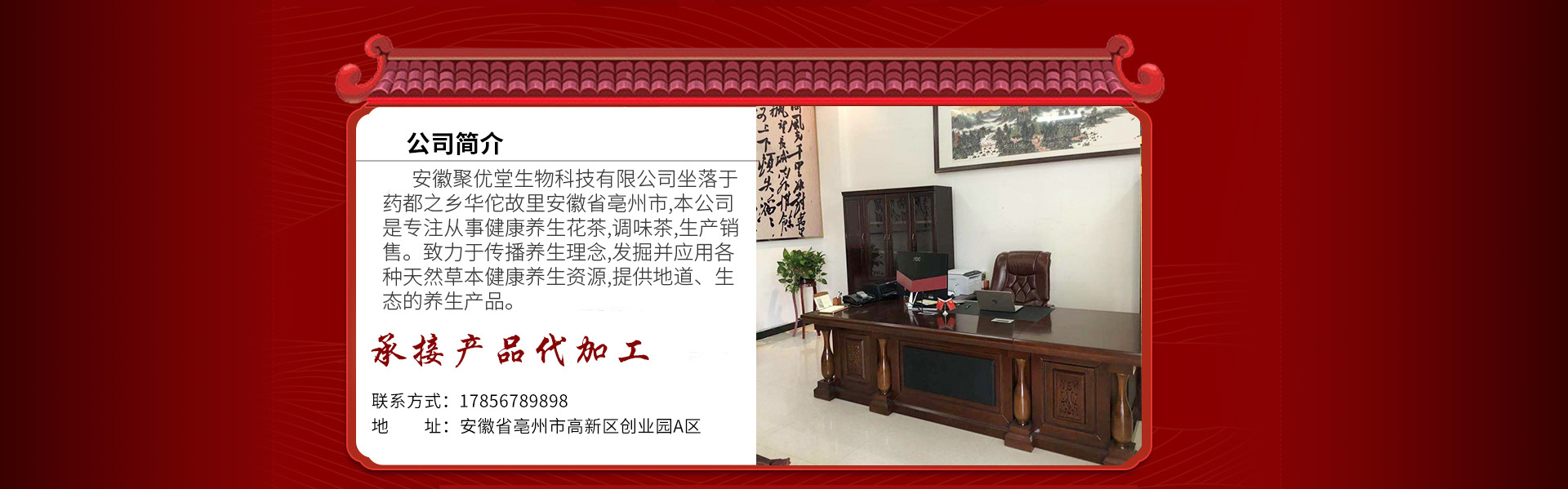 安徽聚優(yōu)堂生物科技有限公司是花草茶等產(chǎn)品專業(yè)生產(chǎn)加工的公司,擁有完整、科學(xué)的質(zhì)量管理體系。安徽聚優(yōu)堂生物科技有限公司的誠信、實力和產(chǎn)品質(zhì)量獲得業(yè)界的認(rèn)可。歡迎各界朋友蒞臨參觀、指導(dǎo)和業(yè)務(wù)洽談。