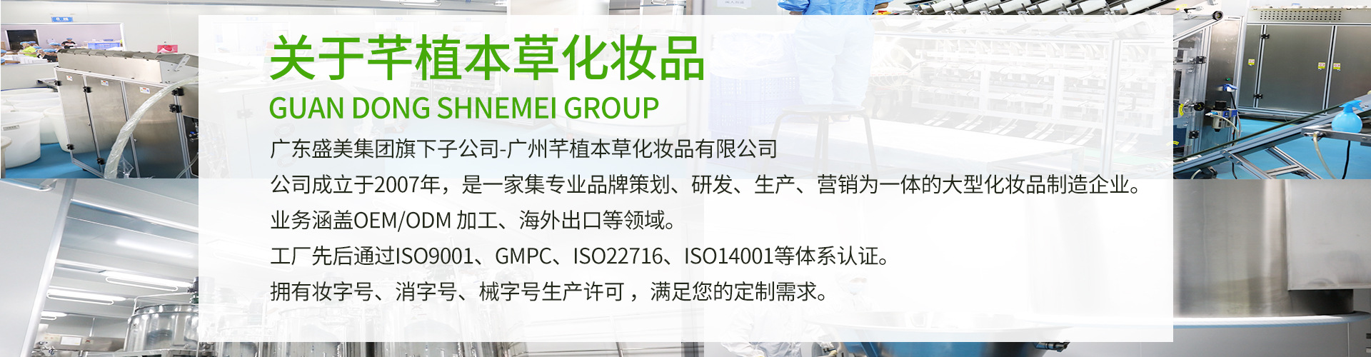 廣東盛美健康產(chǎn)業(yè)集團(tuán)旗下子公司-廣州芊植本草化妝品有限公司,公司成立于2007年,是一家集專業(yè)品牌策劃、研發(fā)、生產(chǎn)、營銷為一體的大型化妝品制造企業(yè)。公司先后通過ISO9001、GMPC、ISO22716、ISO14001等體系認(rèn)證,公司廠房面積超過3萬平方米,擁有GMPC專業(yè)生產(chǎn)線36條、7000多個(gè)已推出市場的成熟配方,擁有妝字號、消字號、健字號生產(chǎn)許可,滿足您定制需求