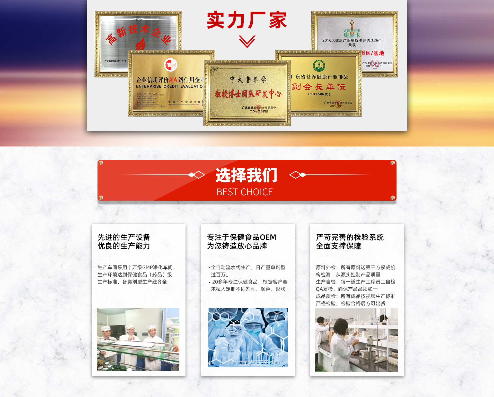 廣州方麗生物科技有限公司是廣州市煒鑫生物科技有限公司集團(tuán)下的子公司,是營養(yǎng)保健食品領(lǐng)域一家以技術(shù)創(chuàng)新及國際化為戰(zhàn)略導(dǎo)向,集研發(fā)、生產(chǎn)、銷售、技術(shù)服務(wù)為一體的綜合服務(wù)提供商。公司在營養(yǎng)保健食品領(lǐng)域深耕多年,一直保持對市場需求和技術(shù)發(fā)展的關(guān)注,持續(xù)開展?fàn)I養(yǎng)、功能配方的開發(fā)和劑型技術(shù)的應(yīng)用研究,以更好地滿足從嬰童、青少年、孕婦到中老年人群的不同健康需求。公司自建前沿營養(yǎng)研究院,擁有2位英國皇家院士、10余位博士、及研發(fā)應(yīng)用工程師組成的行業(yè)專家團(tuán)隊(duì),為客戶提供卓越的產(chǎn)品。