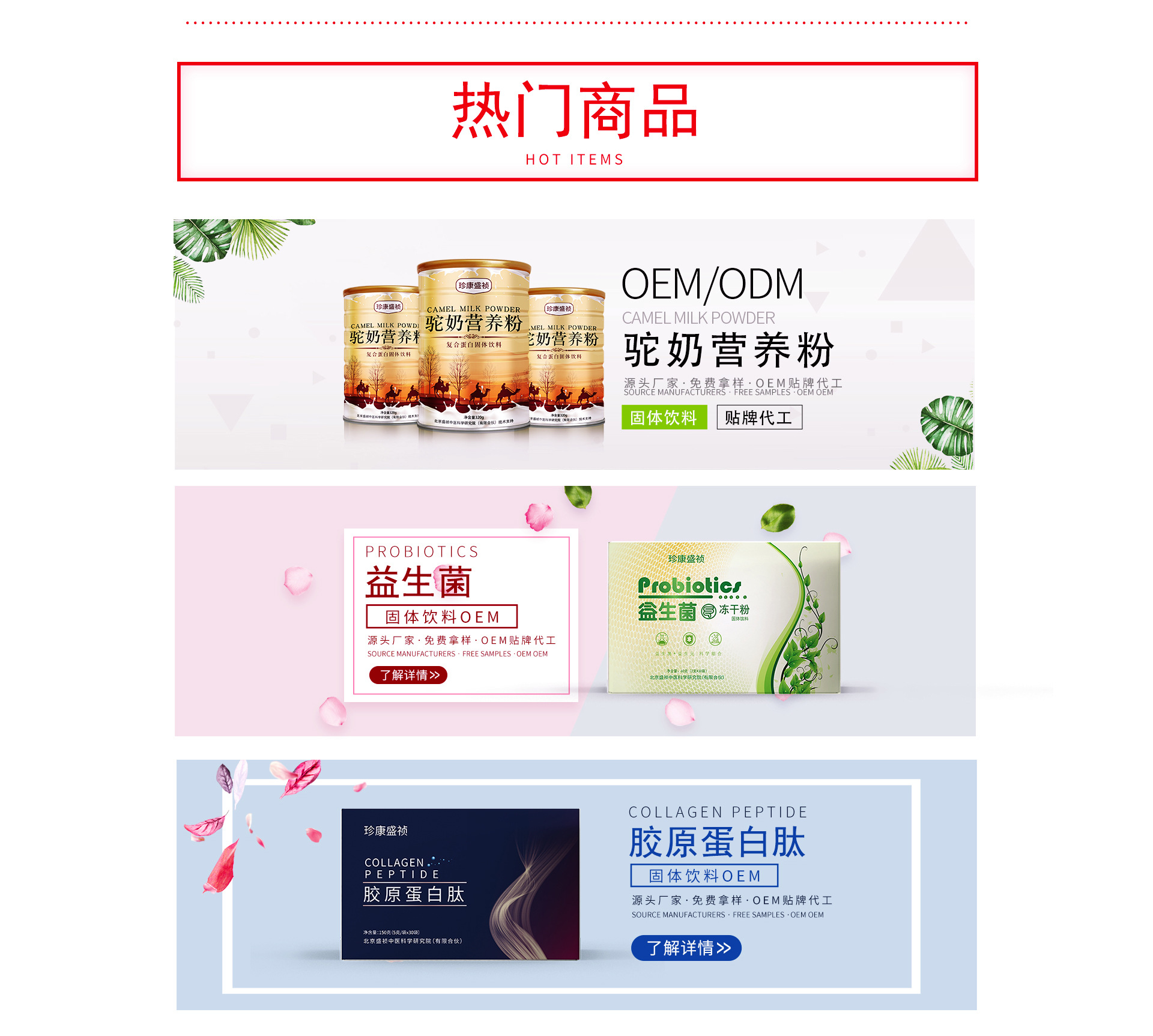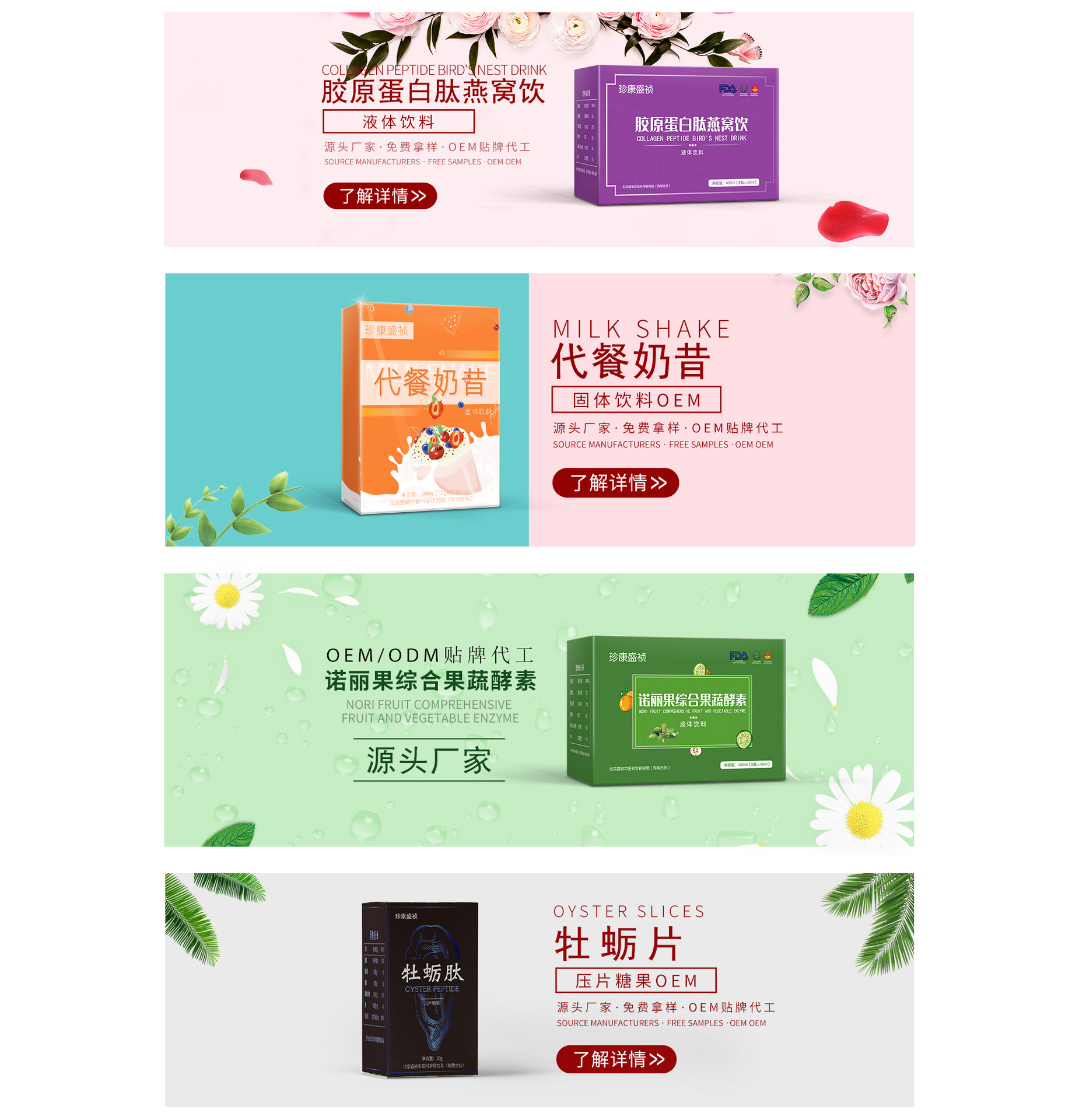 盛禎生物科技集團(tuán)有限公司是一家集功能性食品研發(fā)、生產(chǎn)、銷(xiāo)售于一體的高科技型企業(yè),一直專(zhuān)注于營(yíng)養(yǎng)健康領(lǐng)域,堅(jiān)持以“至真至美、飲水思源”的理念,秉承中華傳統(tǒng)中醫(yī)養(yǎng)生之道,結(jié)合現(xiàn)代營(yíng)養(yǎng)學(xué),以先進(jìn)的生產(chǎn)技術(shù)、優(yōu)質(zhì)的產(chǎn)品、維信踐諾的服務(wù)品質(zhì),為廣大客戶(hù)創(chuàng)造價(jià)值、締造健康。 盛禎生物科技集團(tuán)有限公司建立了一個(gè)經(jīng)驗(yàn)豐富的設(shè)備保障、技術(shù)研發(fā)、生產(chǎn)管理團(tuán)隊(duì),為生產(chǎn)高效和產(chǎn)品質(zhì)量提供了有力的保障,擁有現(xiàn)代化的粉劑、顆粒劑、片劑、代餐類(lèi)、駝奶粉系列、飲品口服液、袋泡茶、丸劑生產(chǎn)線(xiàn),并形成了產(chǎn)品代加工生產(chǎn)鏈。 盛禎健康品,用心為大眾,盛禎作為一家嚴(yán)謹(jǐn)、負(fù)責(zé)任的企業(yè),憑借對(duì)行業(yè)的了解和國(guó)際營(yíng)養(yǎng)現(xiàn)的認(rèn)知,盛禎一直希望致力于提高國(guó)人的健康和營(yíng)養(yǎng)認(rèn)知觀(guān)念,推進(jìn)中國(guó)營(yíng)養(yǎng)保健產(chǎn)業(yè)的良性發(fā)展,共同為中國(guó)人管理健康!