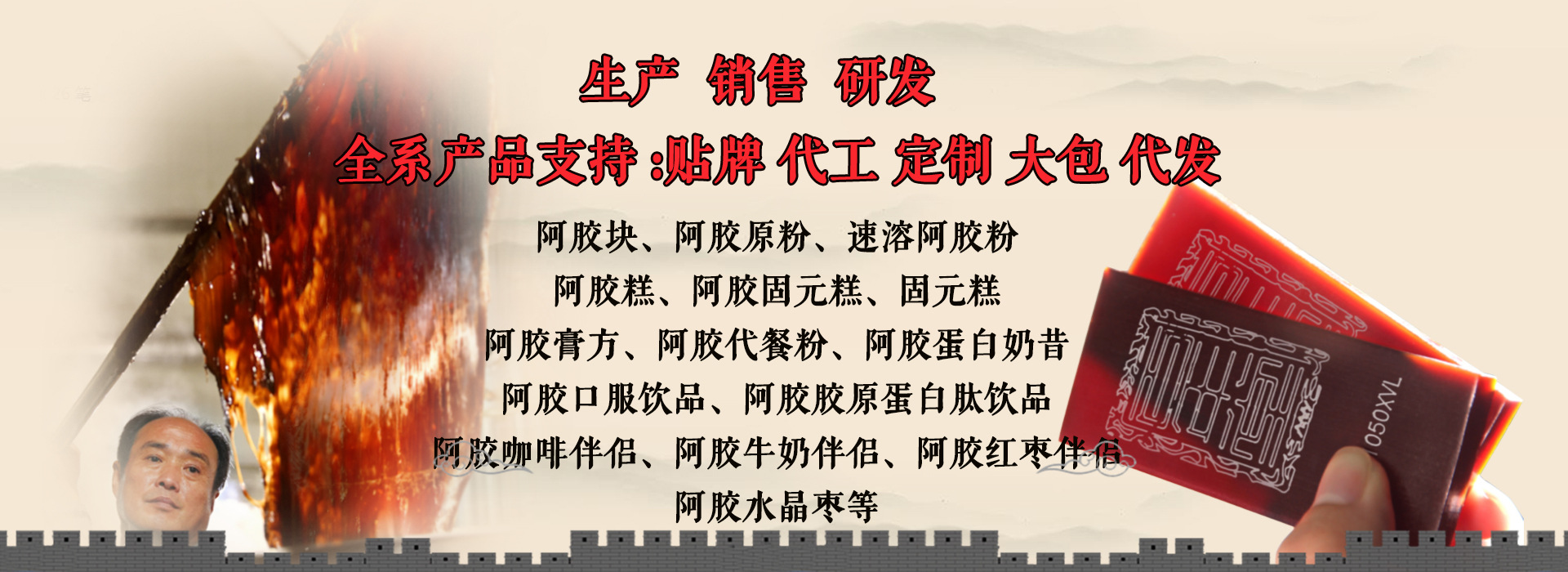 東阿百年堂阿膠生產(chǎn)廠(chǎng)家,經(jīng)營(yíng)百年堂全系熱銷(xiāo)產(chǎn)品,可提供【阿膠塊】【阿膠糕】【阿膠膏方】【阿膠漿】【阿膠原粉】【阿膠速溶粉】【阿膠棗】等阿膠系列產(chǎn)品的OEM/DEM貼牌代工,企業(yè)團(tuán)購(gòu)包裝定制的業(yè)務(wù),歡迎各界朋友蒞臨東阿百年堂生產(chǎn)公司參觀(guān)、指導(dǎo)和業(yè)務(wù)洽談。