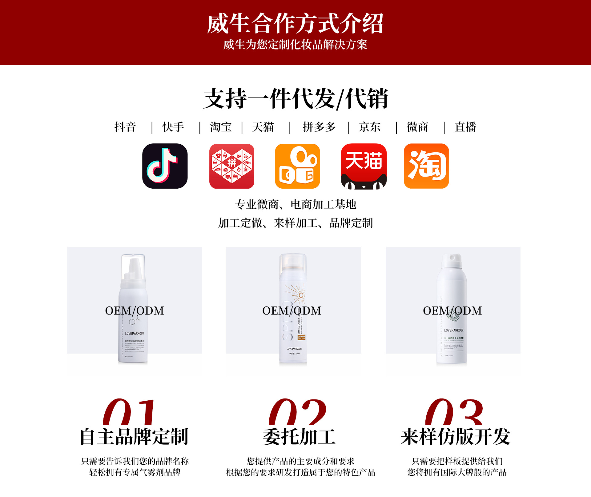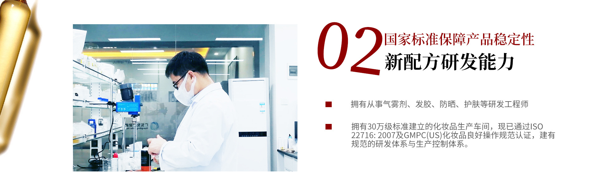 廣東聚威健康產(chǎn)業(yè)有限公司創(chuàng)始于2003年,發(fā)展至今已成為一家以科技為依托,以品質(zhì)為核心,以時(shí)尚為追求,以服務(wù)為靈魂,集產(chǎn)品策劃、包裝設(shè)計(jì)、配方研發(fā)、自動(dòng)化生產(chǎn)、專業(yè)服務(wù)為一體的綜合性國(guó)際化大型氣霧劑一元、二元(BOV)化妝品高科技生產(chǎn)廠家。公司擁有完整的個(gè)人護(hù)理品與豐富的產(chǎn)品品類,以“品種齊全、質(zhì)量穩(wěn)定、性能優(yōu)異、服務(wù)快捷”而譽(yù)滿全球,產(chǎn)品涵蓋日化線、專業(yè)線、電商、微商、電視購(gòu)物、新媒體直銷等主流渠道,品牌客戶超過(guò)1000個(gè),在化妝品OEM/ODM/OBM代加工行業(yè)里突飛猛進(jìn),秉承工匠精神,制造極致產(chǎn)品,以“聚威出品、必屬精品”為準(zhǔn)則,書寫氣霧劑生產(chǎn)領(lǐng)域的巔峰佳作。